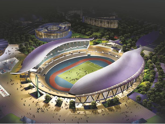 主體育場(chǎng)鳥瞰造型像巨大的含苞待放的花蕾,環(huán)繞著它的五座場(chǎng)館則像朵朵大小不一形狀各異的鮮花。建成后的省奧林匹克中心將成為南昌市新的城市標(biāo)志之一。